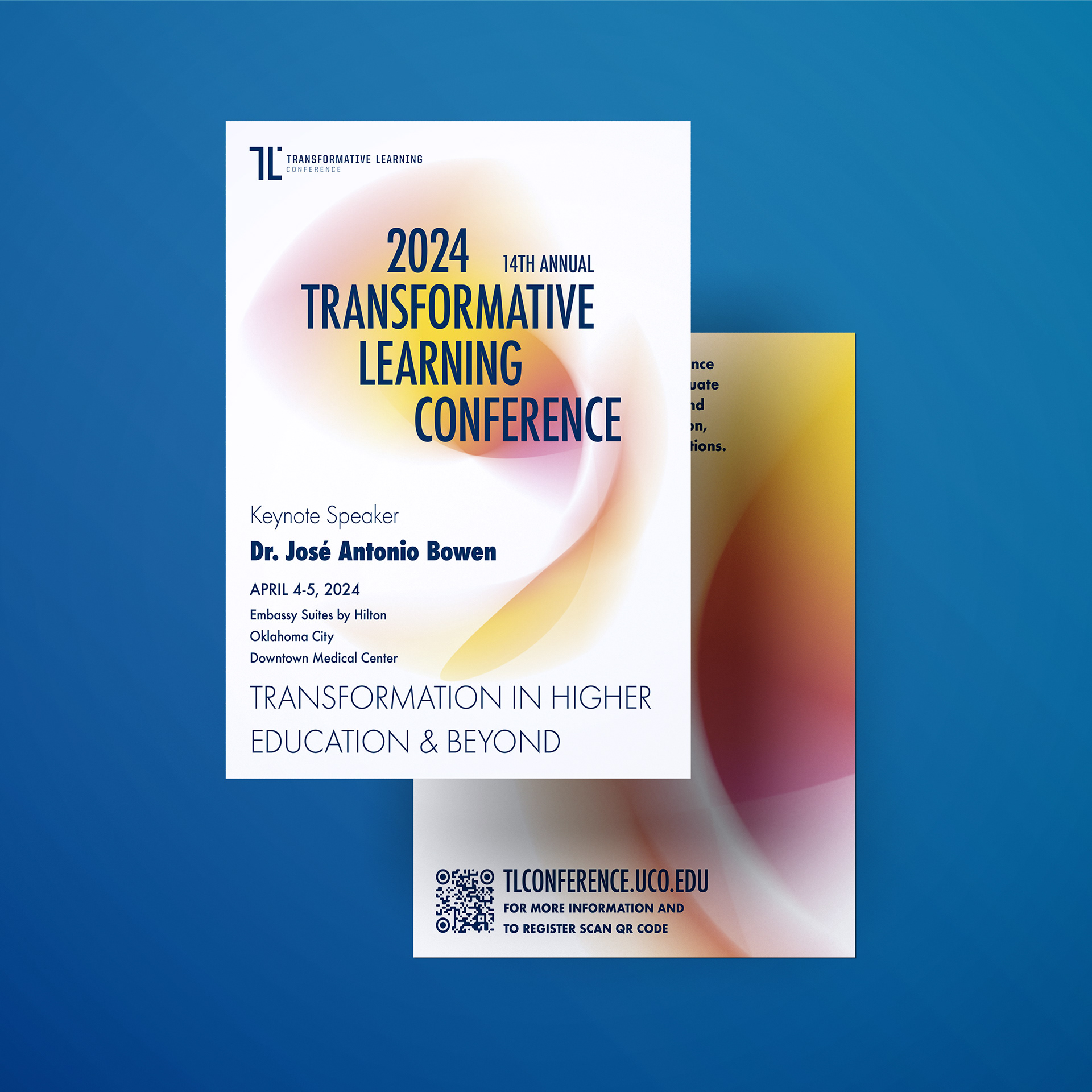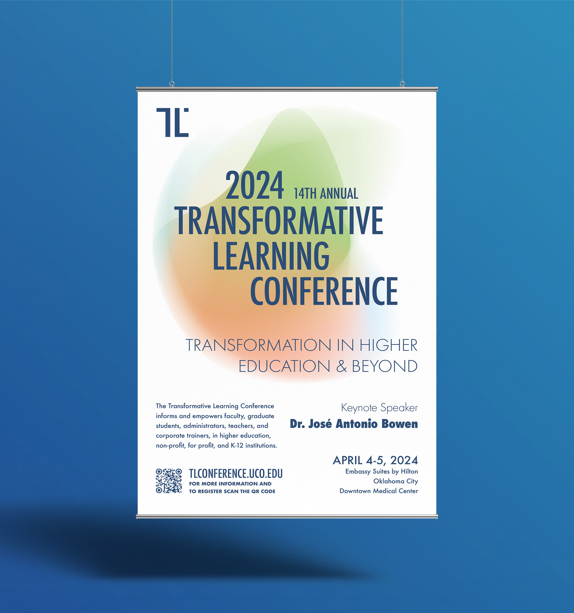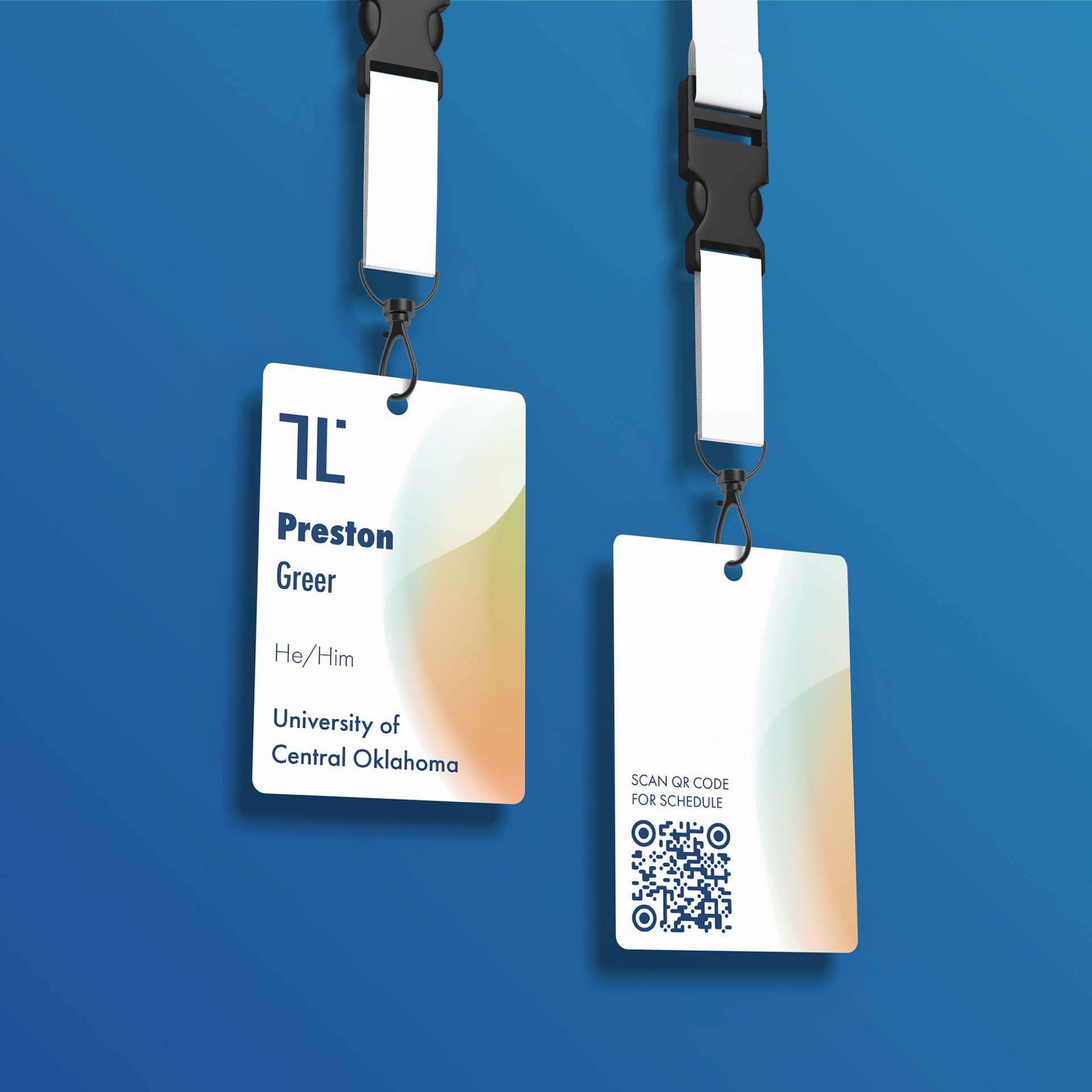 Chosen identity system for the 2024 UCO STLR conference, showcasing gradients representing each student’s unique STLR experience.