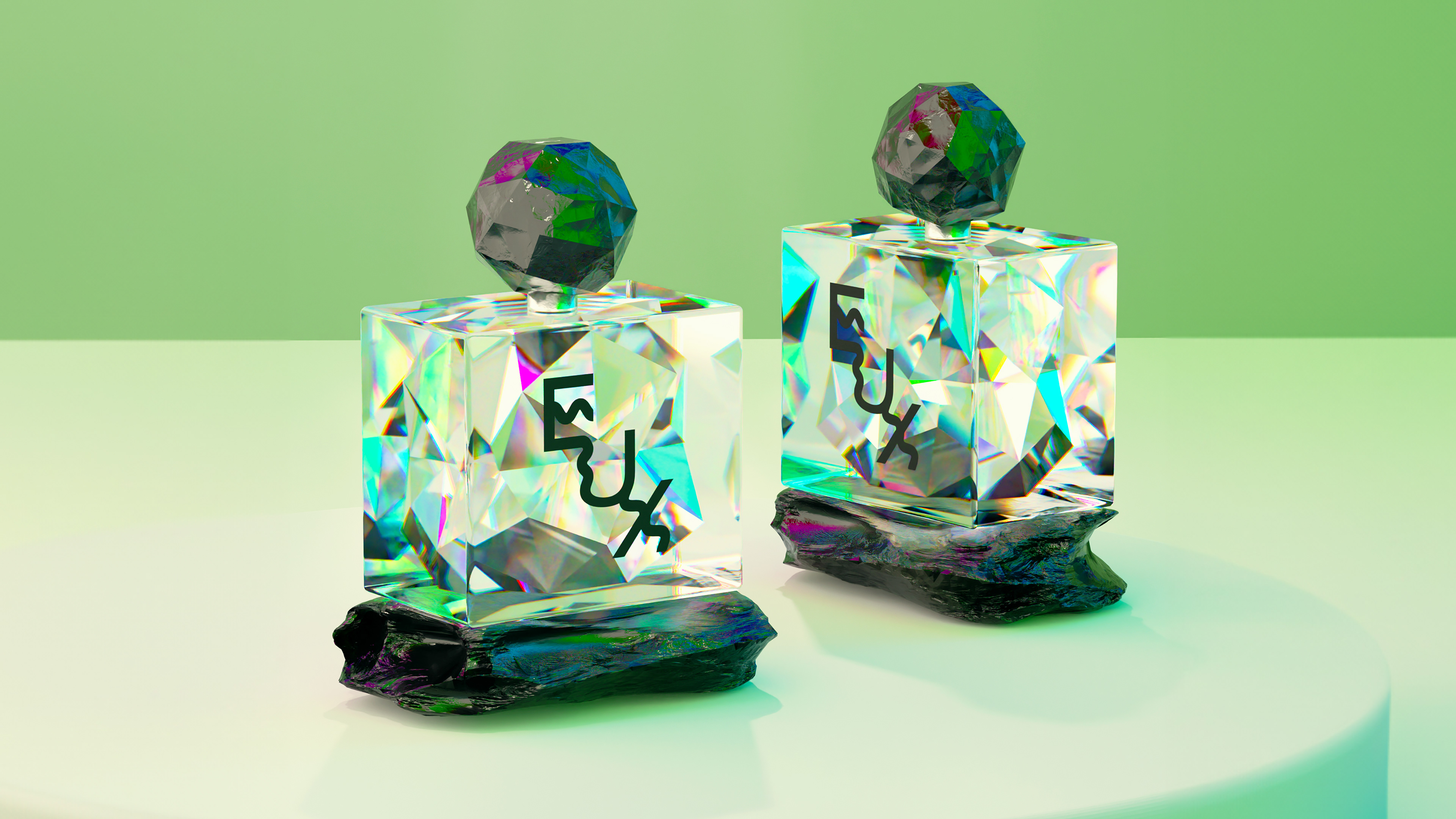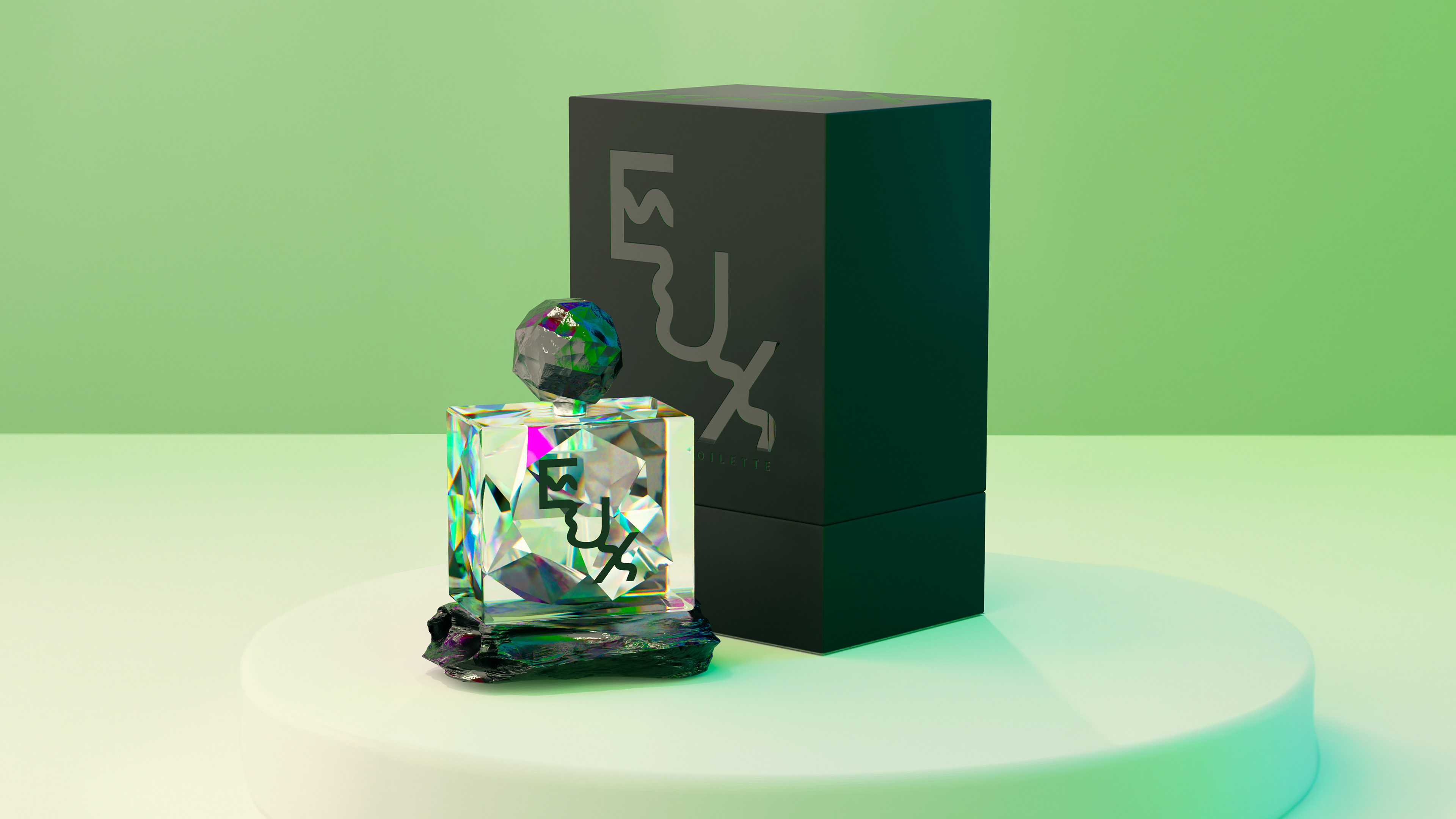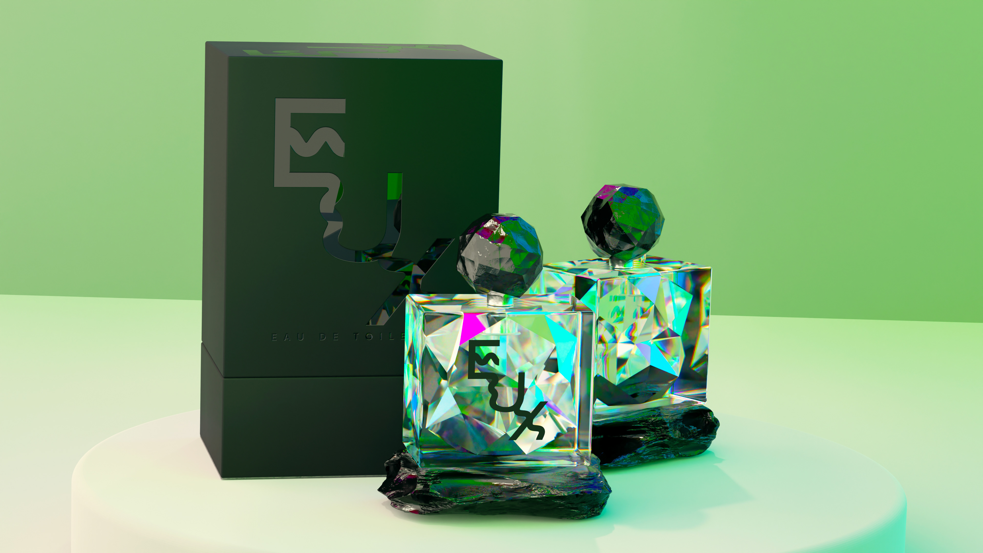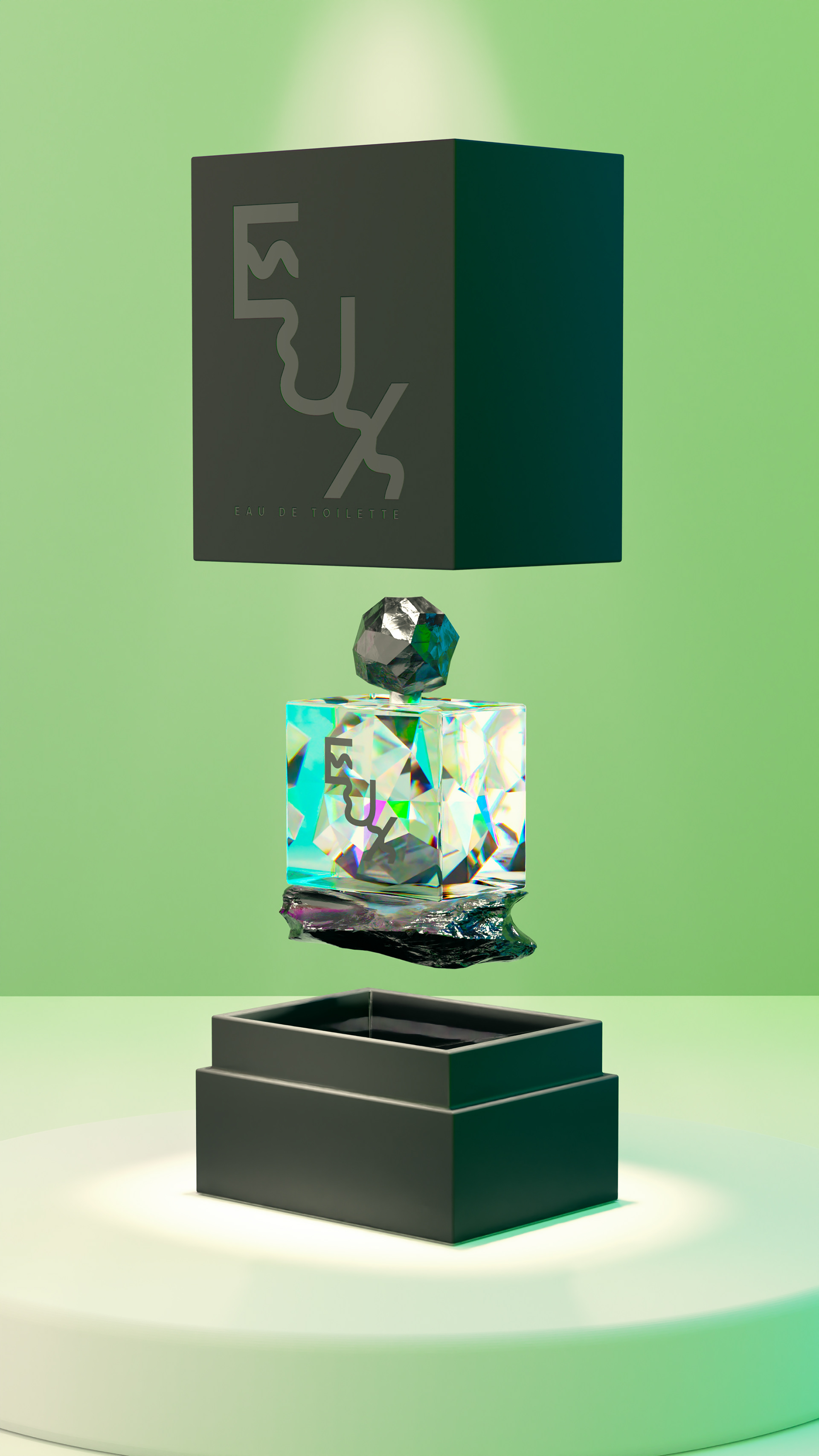 Eux is a gender-neutral fragrance concept meant to smell unique on each person's skin. This concept is based on the beauty of the refracted light through something broken.